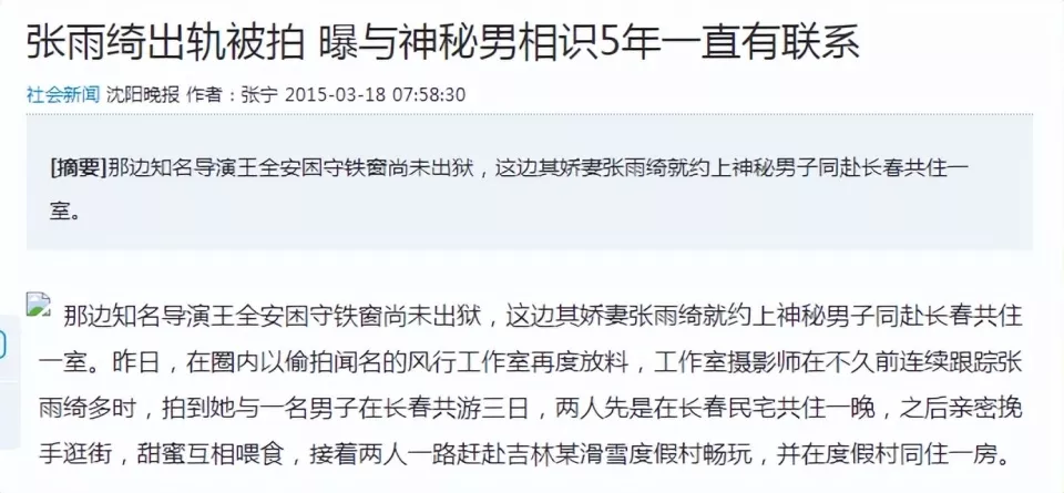 但尚未与丈夫办理离婚手续的张雨绮,却在2015年被拍到独自前往吉林长春,与一名陌生男子亲密约会,被曝疑似出轨。