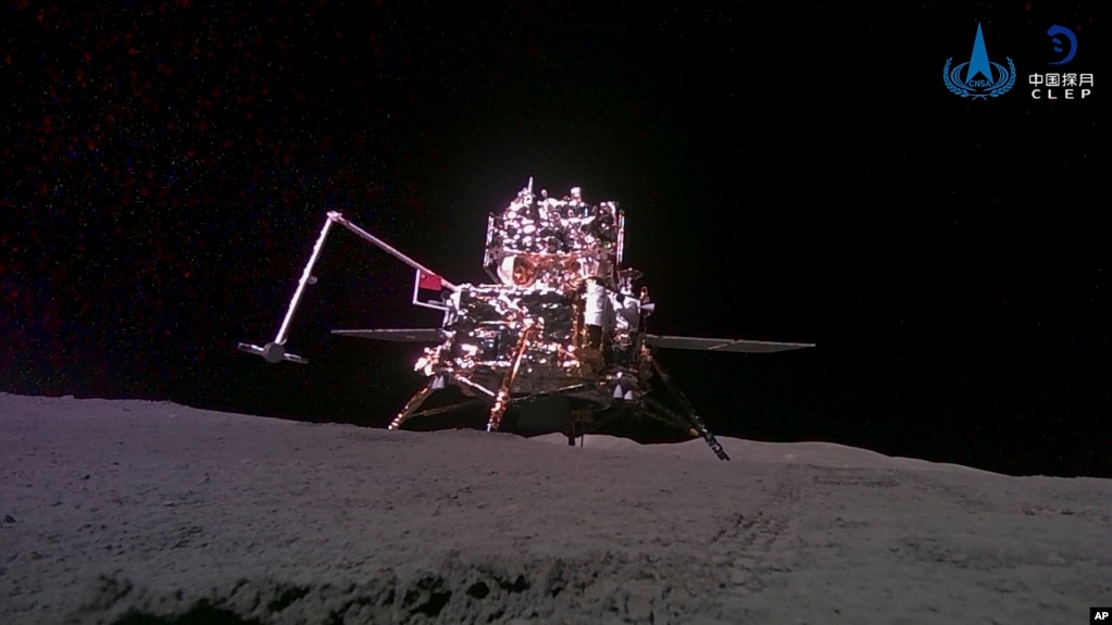 嫦娥六号探测器从月球背面采集土壤样品,于第75届国际宇航大会上亮相。(新华社/美联社发布)