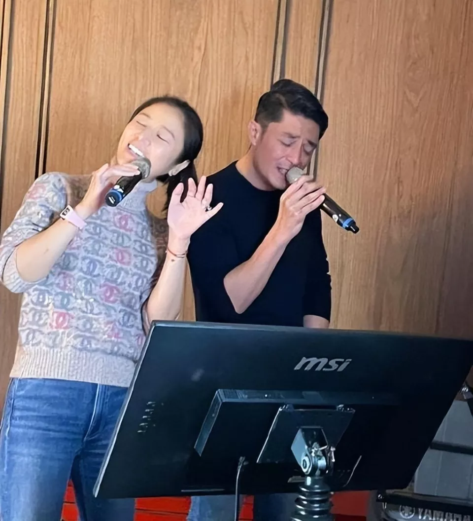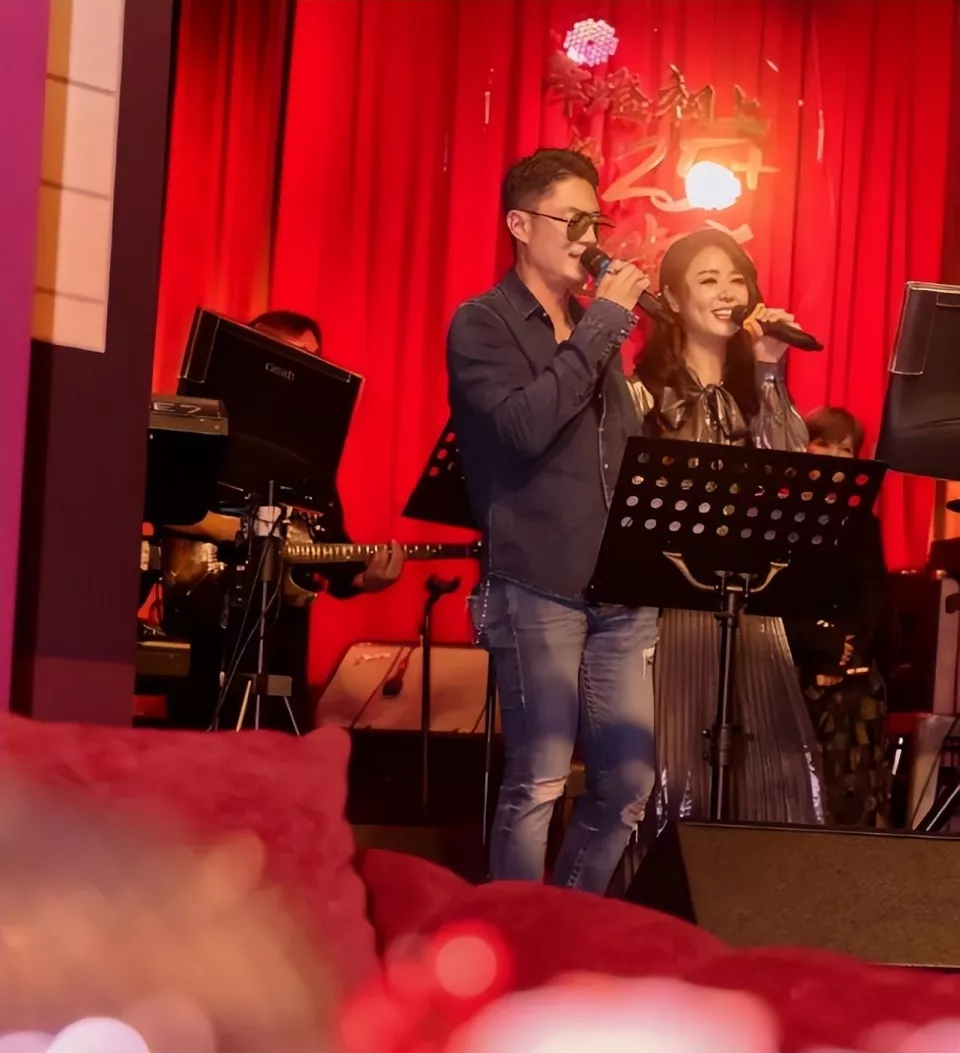 穿着黑色牛仔衬衫的他和林心如在台上甜蜜合唱,好恩爱的一对明星夫妻。