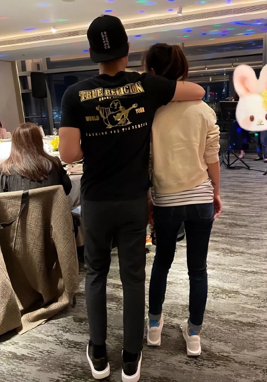 徐若X当晚则是扎起高发髻,也是迎合了闺蜜的生日派对主题。