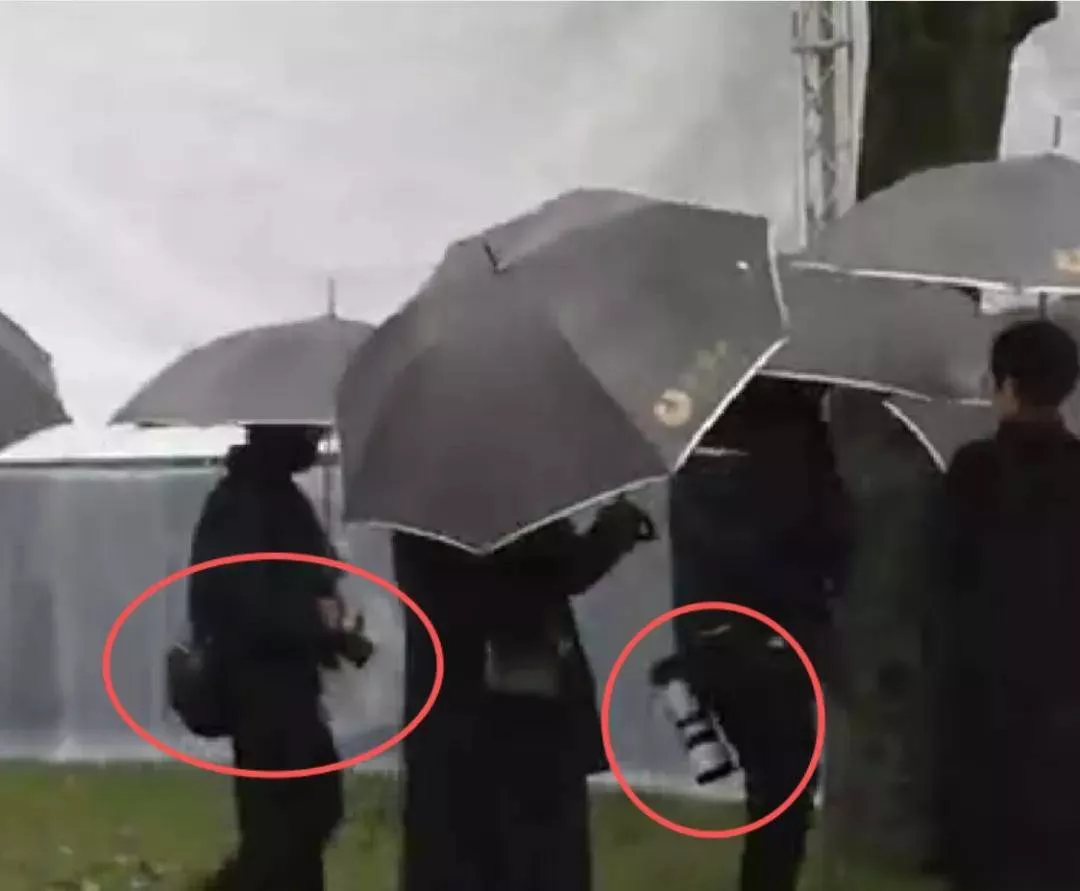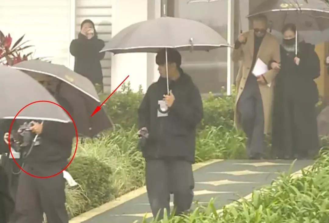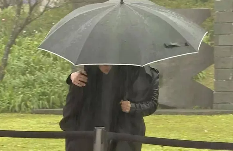 小S丈夫用黑伞隔绝了场外媒体直播镜头,却任由他们面前的摄像师随意怼脸。
