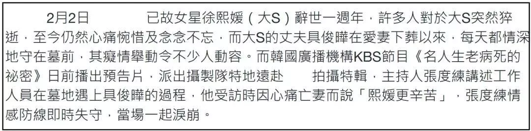 其实网友进一步怀疑具俊晔是有原因的,他花了一年时间,让韩综拍摄自己守着大S墓地,大S周年仪式现场,又有多位摄像师跟拍,更微妙的是还有和大S毫无交集的韩星出席仪式。