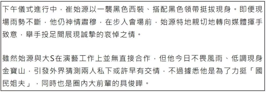 作为大S的家人,他们是悲伤的,作为离不开聚光灯的明星家族,他们的悲伤越看越觉得打了折扣,仿佛永远夹杂着权衡利弊。
