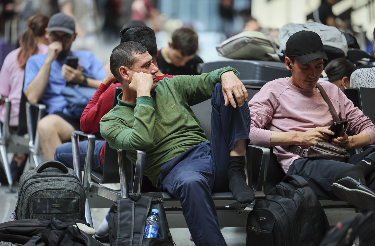 路透根据俄罗斯媒体报导,乌克兰派遣无人机大规模袭击俄罗斯,导致莫斯科主要机场21日陷入混乱,成千上万名旅客在航班取消或延误后于机场排队等待或者直接睡在机场地板。
