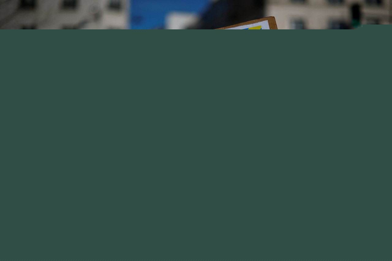 欧方提出5项核心诉求,希望美方在维护欧洲与乌克兰安全利益下,能成功推动停火。图为今年2月法国一场抗议俄乌战争活动中,民众手持标语「顿巴斯属于乌克兰」。(路透)